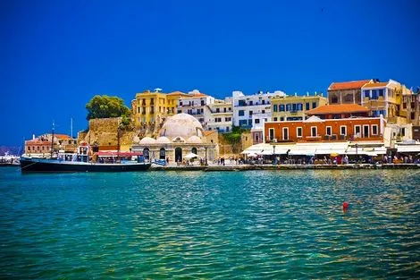 Visite de Chania (La Canée) qui est non seulement la plus belle ville de Crète mais l'une des plus belles de Grèce : ses ruelles avec les nombreux magasins, la cathédrale, les anciennes maisons le long des ruelles avoisinant le port vénitien, le phare, autant de choses à voir. Continuation vers le lac de Kournas, qui est le seul lac naturel d'eau douce de l'île. Cette visite permettra de se détendre, avec la possibilité de faire une promenade, de s'installer en terrasse, de se baigner ou de profiter d'un tour de lac en barque à pédales, pour voir les tortues, poissons et oiseaux.