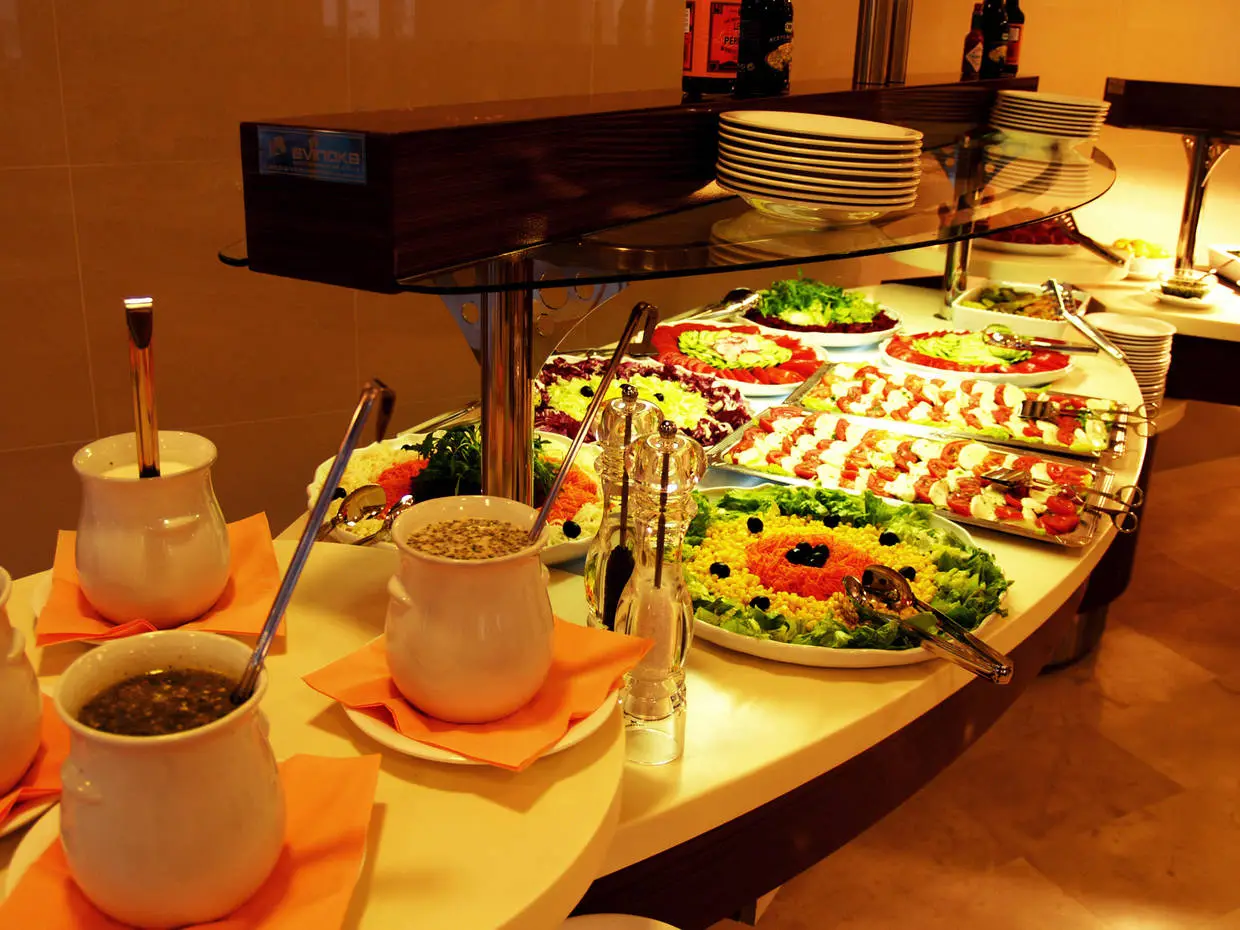 - de la pension complète (petit-déjeuner, déjeuner et dîner) servie sous forme de buffet au restaurant.