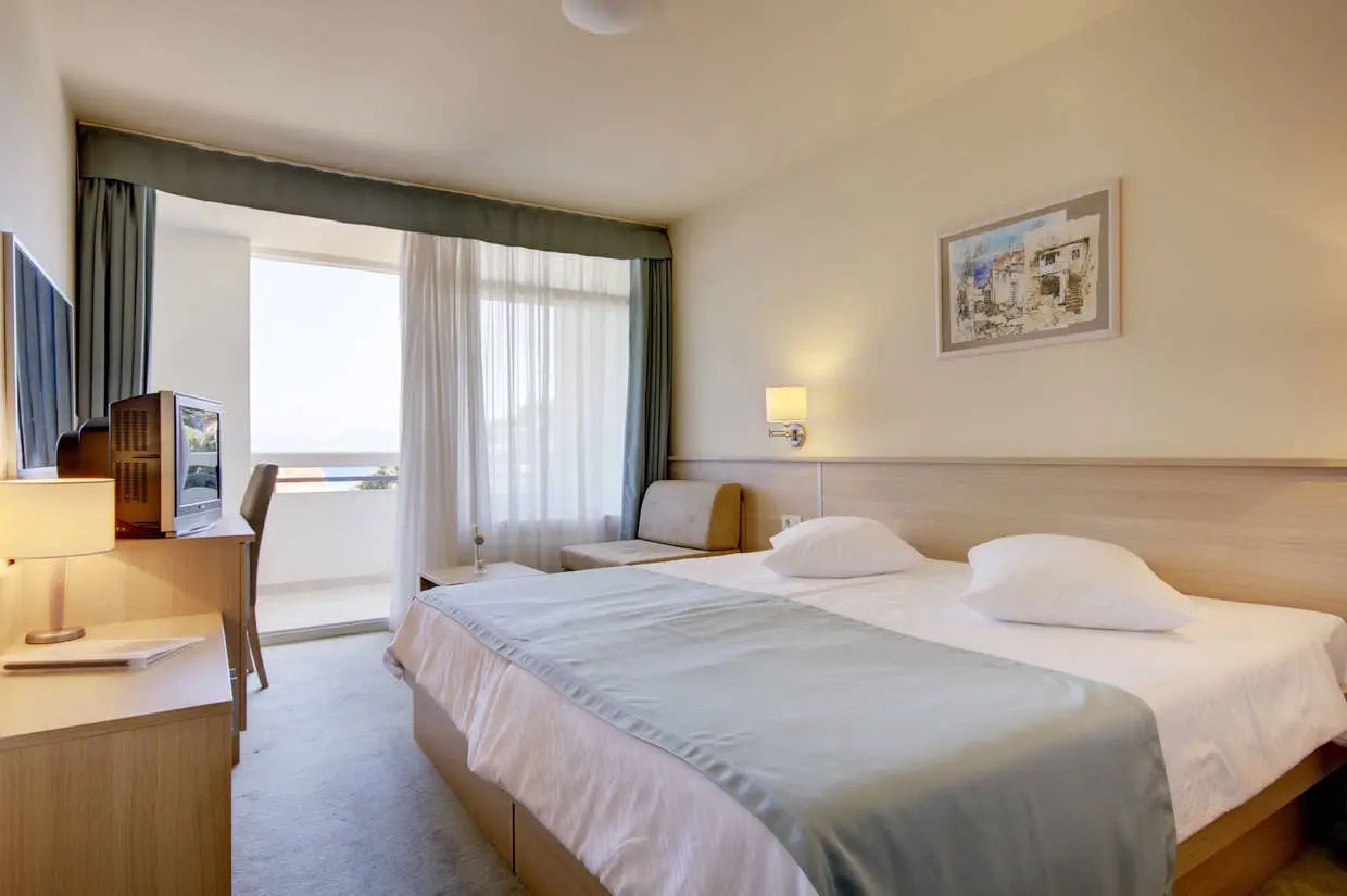 Capacité : 2 adultes en chambre économique et 2 adultes + 1 enfant (fauteuil-lit) en chambre standard côté parc.