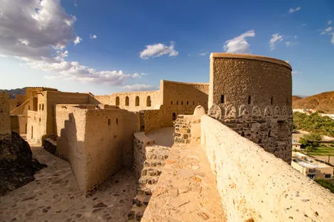 Après le petit déjeuner, direction le charmant village ancestral de Birkat Al Mawz au pied de la montagne Verte Jebel Akhdar. Continuation vers le fort de Jabreen. Le château de Jabreen, construit au 17ème siècle, son plâtre, les portes sculptées et les poutres en bois peintes des plafonds rendent ce château étonnamment différent. Après avoir visité le château de Jabreen, retour vers Nizwa en passant par la partie Jebel Shams la plus célèbre chaîne de montagnes Hajar d'Oman. Nous passerons par les plus anciennes petites villes d'Oman Bahla avec son fort (visite extérieure). Arret aux palmeraies d'Al Hamra, arrêt en chamin pour déjeuner, direction Muscat, la capitale. Dîner libre et nuit à l'hôtel.